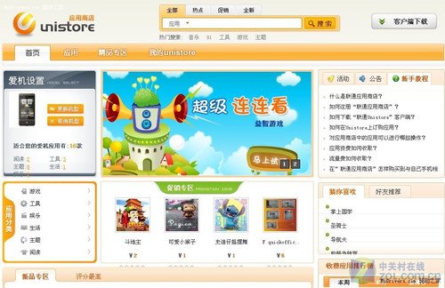 目前聯(lián)通應用商店共有1125款應用,其中包含445款游戲、208款閱讀、294款主題、生活軟件113款、工具軟件49款,娛樂應用16款。目前仍處于測試階段,還沒有應用開發(fā)商進行大規(guī)模的程序提交。