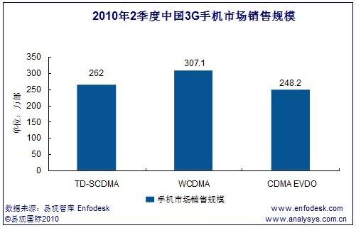 根據(jù)易觀智庫Enfodesk近期發(fā)布《2010年第2季度中國移動終端市場季度監(jiān)測》數(shù)據(jù)顯示,中國移動終端市場2010年第2季度國內(nèi)手機銷售總量達5916.1萬部(不計黑手機和水貨手機),環(huán)比增長7.5%,其中由于CDMA與3G手機的消費需求持續(xù)增加產(chǎn)生的推動作用明顯。