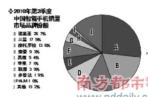 市場調研機構易觀國際最新監(jiān)測數(shù)據(jù)顯示,中國智能手機市場2010年第2季度國內銷售總量達1348.1萬部(不計黑手機和水貨手機),環(huán)比增長27.5%.在蘋果iOS與谷歌Android平臺沖擊下,Symbian合作伙伴在資源投入方面出現(xiàn)分化跡象,紛投蘋果、谷歌陣營,導致背后的諾基亞市場份額持續(xù)下滑。