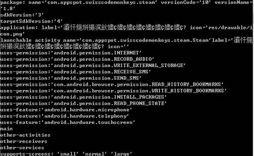 Jacky舉例,安智網(wǎng)的一款應(yīng)用軟件名為屏幕水珠,在2010年7月份聯(lián)系原作者進(jìn)行的漢化,由于效果不錯(cuò),一些廠商進(jìn)行修改后,在代碼中加了收取和發(fā)送短信以及讀取和寫(xiě)入書(shū)簽的權(quán)限。