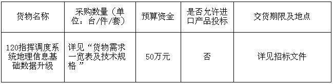 120指揮調度系統(tǒng)地理信息基礎數據升級采購項目招標公告