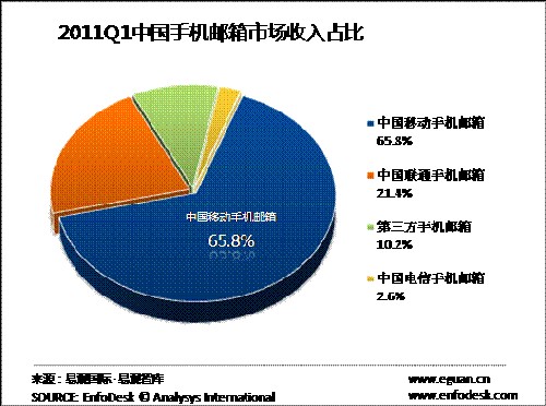 2011年Q1中國手機郵箱市場收入規(guī)模達(dá)3.95億元