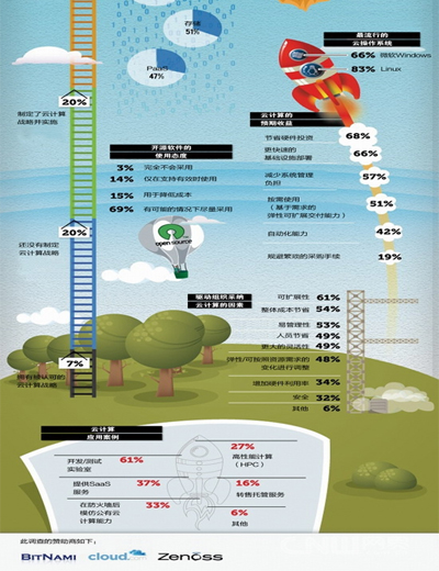 此項調(diào)查指出,在他們調(diào)查的所有云部署項目中,完全不使用開源軟件的云項目只有3%,而69%的云項目在可能的情況下均采用了開源軟件。