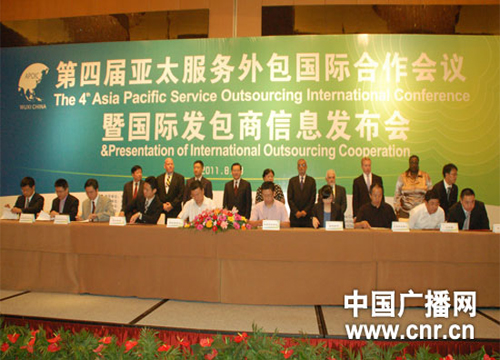 8月27日至29日,以“創(chuàng)新、融合、超越”為主題的第四屆亞太服務(wù)外包國(guó)際合作會(huì)議在江蘇無錫舉行。15個(gè)服務(wù)外包項(xiàng)目現(xiàn)場(chǎng)簽約,總金額約1.7億美元。