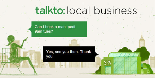 這一切是怎樣實現(xiàn)的呢?TalkTo通過短信與商家溝通。用戶可以通過web應用在TalkTo目錄中搜索需要的服務,輸入商家的詳細地址或者大概位置,TalkTo就可以確保商家看到用戶的短信。TalkTo用戶可以向商家提出問題和意見,或直接預定服務。“這一切就像和朋友發(fā)短信一樣簡單。”