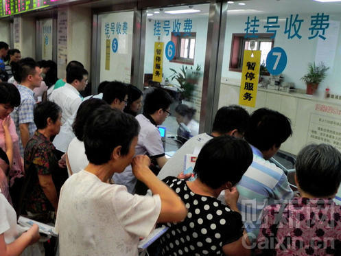 圖:2011年8月2日,市民在杭州一家醫(yī)院里排隊(duì)掛號(hào)