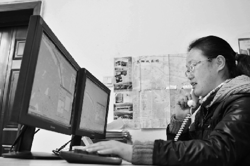 圖:東陽(yáng)出租車呼叫中心調(diào)度員韓欣在接聽電話,調(diào)度車輛