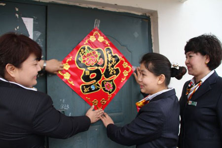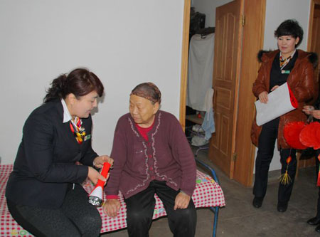 “阿姨,春節(jié)快到了,我們來看看您,前兩天已經(jīng)幫您把電充上了,這次給您帶了個手電,用著它以后到地下室可以照個亮!标(duì)長阿依古麗向丁阿姨說明來意,還跟丁阿姨試了試,手電是充電式的,不用換電池,丁阿姨挺高興的。臨走時,阿依古麗還在她家門上貼了個大紅的“福”字,祝福老人家新年快樂。