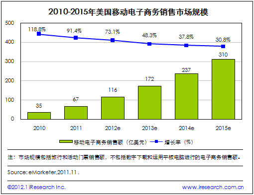 2015年美國移動電子商務(wù)市場規(guī)模將達(dá)到310億美元