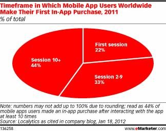移動應用分析公司Localytics提供的數(shù)據(jù)顯示,增加應用粘性對用戶重復訪問應用以及經(jīng)常性參與應用內(nèi)置支付非常重要。舉例而言,連續(xù)數(shù)天玩一款手機游戲的玩家,比不經(jīng)常玩這款游戲的玩家更可能購買游戲附加的內(nèi)容或功能。Localytics的研究結果表明,忠實的應用用戶比平均用戶使用應用內(nèi)置支付高出25%。Localytics的數(shù)據(jù)還表明,44%的智能手機用戶只有與應用互動10次以上,才會使用應用內(nèi)置支付。該調(diào)查還顯示,在應用發(fā)布12天開始,便會有用戶使用應用內(nèi)置支付。