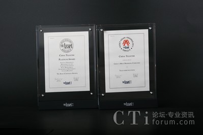 此外,在亞洲著名財(cái)經(jīng)雜志《The Asset》的“2011年企業(yè)大獎(jiǎng)”及“最具潛力中國企業(yè)”評選中,中國電信獲得兩項(xiàng)大獎(jiǎng):