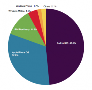 北京時(shí)間5月8日早間消息,市場(chǎng)調(diào)研公司尼爾森周一發(fā)布調(diào)查報(bào)告稱(chēng),美國(guó)市場(chǎng)智能機(jī)用戶(hù)量已經(jīng)超越基本功能手機(jī)用戶(hù)量。今年3月,智能機(jī)在美國(guó)手機(jī)市場(chǎng)的份額為50.4%,Android繼續(xù)占據(jù)統(tǒng)治地位,在智能機(jī)中的份額為48.5%。