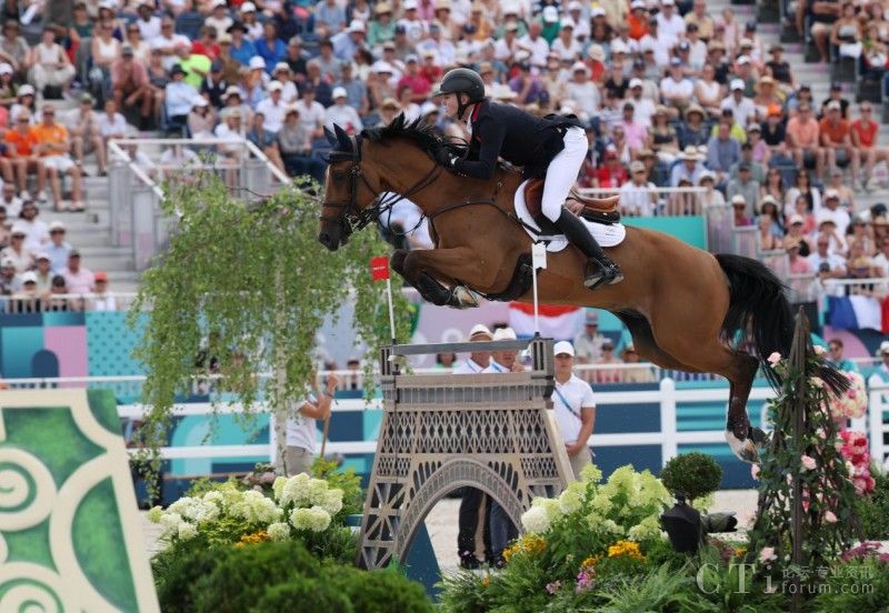 8月2日,英國隊選手查爾斯在比賽中。當(dāng)日,在巴黎奧運會馬術(shù)團體場地障礙大獎賽決賽中,英國隊奪得金牌。新華社記者 楊磊 攝