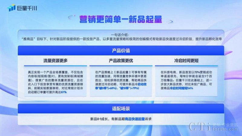 對于在618好物節(jié)期間想借助流量上行期推新品的商家,「新品起量」助力商家在推商品階段,以多重流量策略和極簡的創(chuàng)編模式幫助新品快速度過冷啟階段,提升新品孵化效率,讓營銷變得更簡單。前期實(shí)驗(yàn)數(shù)據(jù)表明,對比常規(guī)計(jì)劃冷啟動(dòng)期訂單量可提升61%。