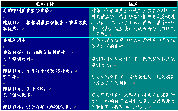 附錄3舉出了完整的衡量標準。這些工作評估標準可以通過各種辦法獲得,包括ACD、IVR、客戶關(guān)系管理(CSM)軟件和質(zhì)量監(jiān)督及勞力管理報告。