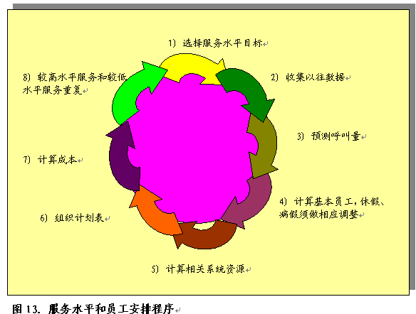 制訂員工工作時間表是一個重要的管理任務(wù),每天通過三次替換有效配置員工,從而提供一年365天,24小時x7天的服務(wù)?衫肁CD報告進行這一工作,確定以往呼叫量、放棄率和高峰期,預計下個小時、下一天、下個月或下一年的呼叫量。管理層按照規(guī)定程序確定員工需求量。根據(jù)以往呼叫量確定員工需求量。