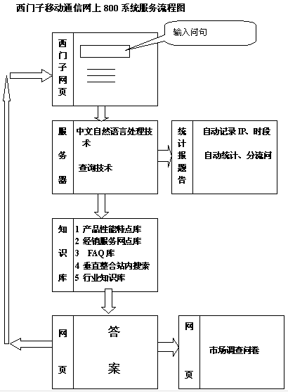 網(wǎng)上800系統(tǒng)的另外一個(gè)特點(diǎn)是自然語句的提問方式,客戶可以更準(zhǔn)確、更快捷利用系統(tǒng)找到找到想要的信息;對(duì)于企業(yè)而言,客戶在用這種方式提問時(shí),他提的問題也是企業(yè)非常重要的,表達(dá)了客戶的需求和想法。提的問題越明確,企業(yè)得到的有價(jià)值的信息就越多。在其系統(tǒng)的后臺(tái),客戶提出的各種問題都被記錄下來,結(jié)合其它的流量數(shù)據(jù),這些信息被不斷的積累、分析,為其營(yíng)銷決策服務(wù)。而且這種人性化互動(dòng)溝通方式的直接結(jié)果是,瀏覽者首先會(huì)感到自然而不受專業(yè)知識(shí)的約束,他會(huì)更多的去嘗試使用自然語言的方式來取得服務(wù),增加目標(biāo)客戶對(duì)客戶服務(wù)網(wǎng)站的依賴性。據(jù)悉,該系統(tǒng)僅首月就達(dá)到了十幾萬的訪問量。