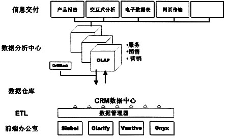根據(jù)Hyperion的定義,CRM可以分為幾類,目前比較常見的是運(yùn)營型CRM——前端辦公室與客戶間各種接觸點(diǎn)的垂直集成,包括通過多種連接方式的交付在內(nèi)的銷售、市場和服務(wù),以及前、后端辦公室的無縫集成。Hyperion認(rèn)為這些僅僅是CRM的初級功能,CRM的真正意義在于它能夠在運(yùn)行過程中對相關(guān)數(shù)據(jù)進(jìn)行分析,并提出智能化的建議,即分析型CRM。