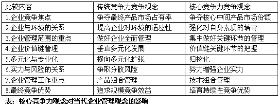 。2)核心競爭力觀念對當(dāng)代企業(yè)管理理念的影響