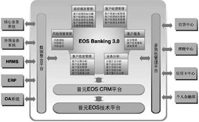 與市場上大多數(shù)銀行客戶經(jīng)理軟件產(chǎn)品和CRM產(chǎn)品所不同的是,普元的EOS Banking是構(gòu)建于普元獨有版權的EOS(Enterprise Operating System,企業(yè)級運營系統(tǒng))平臺之上。