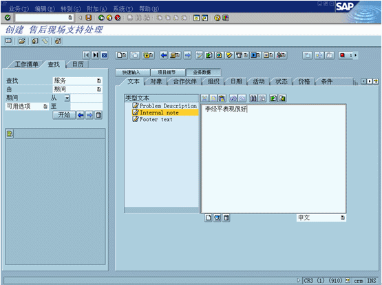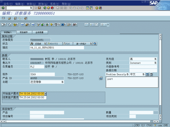 Explorer的層級(jí)樹結(jié)構(gòu)顯示客戶間的業(yè)務(wù)關(guān)系。通過報(bào)價(jià)菜單選項(xiàng)中預(yù)定義報(bào)價(jià)信息使用訂單輸入功能?梢赞D(zhuǎn)化成為訂單,后臺(tái)功能與SAPR/3集成可以實(shí)現(xiàn)。
