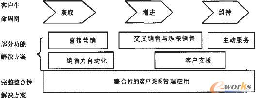 Kalakota and Robinson認(rèn)為,客戶關(guān)系管理主要包括了三個不同的階段,分別為獲取(Acquisition)、增進(jìn)(Enhancement)與維持(Retention)。而這三個各異的部份,也正和客戶的不同生命周期階段不謀而合。