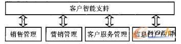 。5)客戶智能支持。客戶智能支持處于系統(tǒng)功能平臺的核心地位,若把圖2中的5個模塊比作是人體的不同功能器官,客戶智能支持就相當于人的“大腦”。雖然CRM應用系統(tǒng)中其他模塊也具各一定的數(shù)據(jù)統(tǒng)計分析能力,但它們的主要功能定位在業(yè)務操作和客戶協(xié)作層面,客戶智能支持模塊則是完整的、以輔助決策為設計目標的分析型應用,其基礎數(shù)據(jù)來自于各CRM業(yè)務流程運行產生的大量數(shù)據(jù)及企業(yè)其他應用系統(tǒng)數(shù)據(jù)。