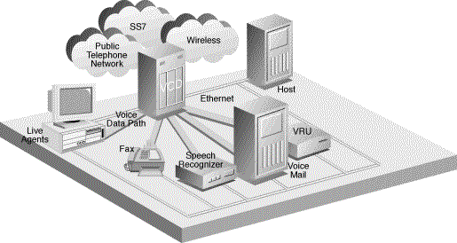圖一描述了基于PC的交換和可編程交換是怎樣經(jīng)常一起使用,以構(gòu)造基于網(wǎng)絡(luò)的智能外設(shè)(也稱為服務(wù)點(diǎn)或增強(qiáng)型服務(wù)平臺)。