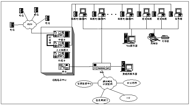 系統(tǒng)包括投訴建議處理、話路控制、秘書(shū)臺(tái)、電信業(yè)務(wù)咨詢、綜合統(tǒng)計(jì)、公告板、Web處理等業(yè)務(wù)模塊,以及系統(tǒng)用戶管理、錄音提取、基本設(shè)置、傳真管理等管理模塊,并實(shí)現(xiàn)了與97系統(tǒng)、112系統(tǒng)的互聯(lián)與資源共享。系統(tǒng)自九八年年底試運(yùn)行以來(lái),運(yùn)行穩(wěn)定,為180臺(tái)受理用戶咨詢投訴的處理工作帶來(lái)較大幫助,基本解決了用戶投訴、查詢難的問(wèn)題,提高了電信服務(wù)質(zhì)量,改善電信行業(yè)形象。