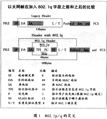 Identifier,虛擬網標識)位識別傳送的幀究竟屬于哪一個虛網。VI位共有12位,最大可以支持的虛網個數不會超過4096個。 802.1p/q的具體定義可以參見圖1。