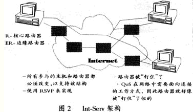 在廣域網上,IETF(Internet Engineering Task Force)定義了兩種IP QoS結構——綜合業(yè)務結構(Int-Serv