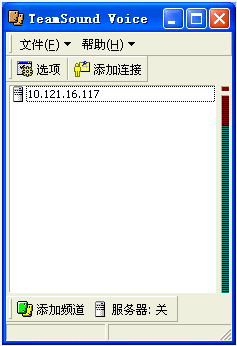 2.基本操作。開服務(wù)器,只需點擊一下“服務(wù)器:開”這個按鈕,你的機器就變成服務(wù)器了,很方便(注意要先設(shè)定默認(rèn)頻道)。加入你的戰(zhàn)友開了服務(wù),你要加入先點擊“添加連接”,在對話框中要輸入對方的IP和密碼,然后再“添加頻道,在局域網(wǎng)中,則直接“添加頻道”就ok了。