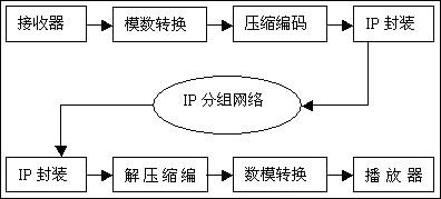 語音信號進(jìn)行數(shù)字編碼以后,下一步就要對語音包以特定的幀長進(jìn)行壓縮編碼。編碼后,壓縮的幀合成一個壓縮的語音包送入網(wǎng)絡(luò)處理器。網(wǎng)絡(luò)處理器為語音添加包頭、時標(biāo)和其它信息后通過IP網(wǎng)絡(luò)傳送到另一端。語音網(wǎng)絡(luò)簡單地建立通信端點(diǎn)間的物理連接,并在端點(diǎn)間傳輸編碼信號。IP網(wǎng)絡(luò)不會形成連接,而要求把數(shù)據(jù)放在可變長的數(shù)據(jù)報或分組中,然后給每個數(shù)據(jù)報附帶尋址和控制信息,并通過網(wǎng)絡(luò)發(fā)送。