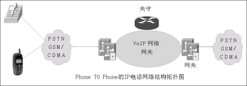 雖然從方式上看,IP話(huà)音業(yè)務(wù)包括了Phone TO Phone、PC TO Phone及PC TO PC三種方式,但是國(guó)內(nèi)主流的IP電話(huà)網(wǎng)絡(luò)仍然是以Phone TO Phone方式進(jìn)行,其網(wǎng)絡(luò)拓?fù)浣Y(jié)構(gòu)如圖所示。