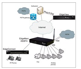 衡量VoIP質(zhì)量好壞的參數(shù)有MOS值, 延遲, 抖動(dòng)以及丟包等參數(shù), 目前市場(chǎng)上能夠測(cè)量這些參數(shù)的系統(tǒng)并不多; 為了幫助用戶更好地了解其VoIP業(yè)務(wù)的好壞, 積極采取措施改善VoIP質(zhì)量, 位于美國加州Santa Clara的Edgewater網(wǎng)絡(luò)公司推出了可以測(cè)量VoIP MOS值的EdgeMarc系列語音網(wǎng)關(guān), 該系列語音網(wǎng)關(guān)與VoIP網(wǎng)絡(luò)管理系統(tǒng)EdgeView一起, 可以組成了一個(gè)功能完善可以監(jiān)控每個(gè)VoIP呼叫MOS值的VoIP運(yùn)營管理平臺(tái). EdgeMarc4500非常適合中小企業(yè)使用, 用戶既可以通過AP無線上網(wǎng), 又可以通過Voice Gateway利用傳統(tǒng)模擬電話打IP電話,