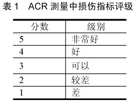在A(yíng)CR測(cè)量中,收聽(tīng)者按照從1~5的5級(jí)損傷指標(biāo)對(duì)一系列音頻文件進(jìn)行分級(jí)(見(jiàn)表1)。