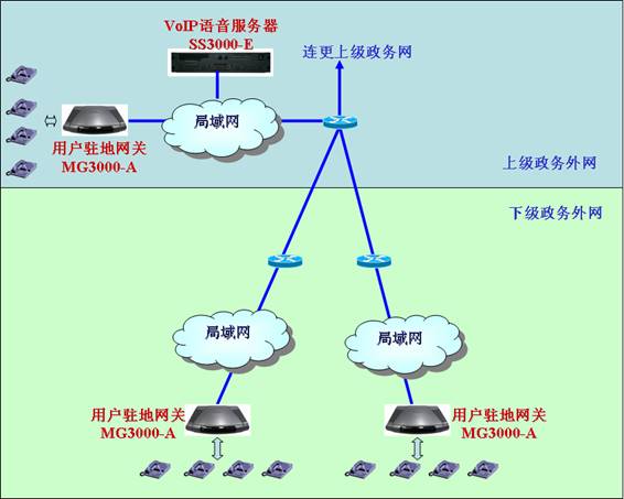 在電子政務(wù)網(wǎng)建設(shè)完成后,政府各級部門可以在其上建設(shè)自己的VoIP系統(tǒng),以實現(xiàn)轄區(qū)范圍內(nèi)“虛擬電話專網(wǎng)”的效果。在這個電話專網(wǎng)內(nèi),所有內(nèi)部電話都有自己設(shè)置的小號,他們之間通話都將免費,而不管這些電話間物理距離是多少。