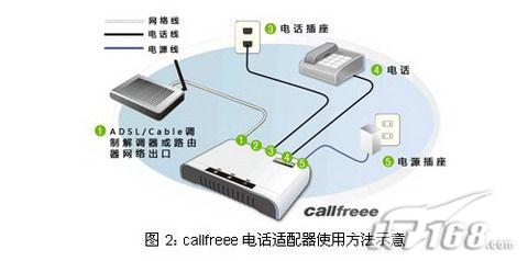 這不僅僅意味著用戶不需要高價(jià)購買設(shè)備,不需要支付任何的月租費(fèi),更重要的是用戶不需要擔(dān)心設(shè)備廠商服務(wù)質(zhì)量下降甚至中斷設(shè)備的使用。而且callfreee電話適配器配置完成以后使用方式非常簡單,用戶不需要更換電話機(jī)、變更電話號(hào)碼和和撥號(hào)方式,使用方法如下圖所示: