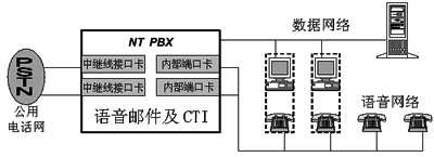基于網(wǎng)絡的PBX則采用了與傳統(tǒng)及PC PBX截然不同的體系結構,完全構筑于網(wǎng)絡之上,通過運行于NT平臺上的軟件,實現(xiàn)全部PBX、語音郵件及CTI功能,這在一定程度上代表了PBX未來的發(fā)展方向。
