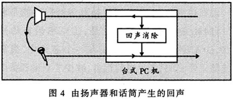——在IP電話的應(yīng)用中,人們?nèi)羰褂脫P聲器和麥克風就可能出現(xiàn)回聲現(xiàn)象。如圖4所示。