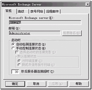 教師將在一臺(tái)裝有攝像頭、麥克風(fēng)的局域網(wǎng)終端(教師機(jī))上安排會(huì)議并進(jìn)行授課。會(huì)議的安排和召開(kāi)必須利用Outlook中的日程安排功能。第一次運(yùn)行Outlook時(shí)將出現(xiàn)設(shè)置向?qū)Т翱冢x擇“用于企業(yè)工作組”,選用“Exchange Server”服務(wù),在Exchange服務(wù)器名中填入服務(wù)器的計(jì)算機(jī)名“65yzfwq”,郵箱則必須填“Administrator”,輸入相應(yīng)密碼(如圖2所示)。