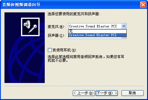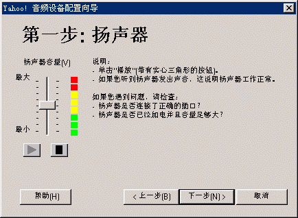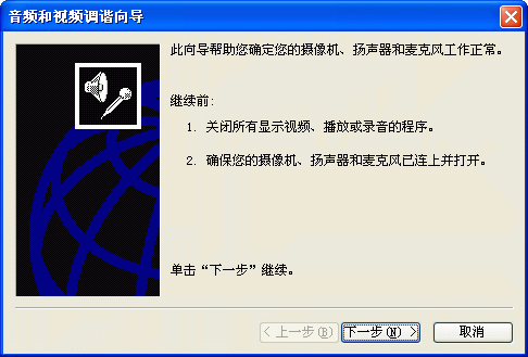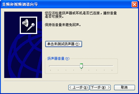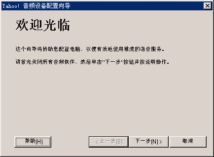 選擇幫助->音頻設(shè)備配置向?qū)?圖2),會(huì)彈出“音頻設(shè)備配置向?qū)А贝翱?圖3),這個(gè)向?qū)?huì)幫助你對(duì)揚(yáng)聲器、麥克風(fēng)、回音、網(wǎng)絡(luò)連接等項(xiàng)目進(jìn)行標(biāo)準(zhǔn)的測(cè)試和設(shè)置。