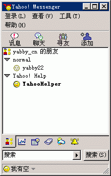 登錄后,可以看到雅虎通的界面非常簡(jiǎn)潔,讓人上手較快。這時(shí),你就可以開始尋找或者添加好友。好友添加完畢先不要急著通話,你還需要對(duì)你的音頻、視頻設(shè)備進(jìn)行調(diào)試和檢查。