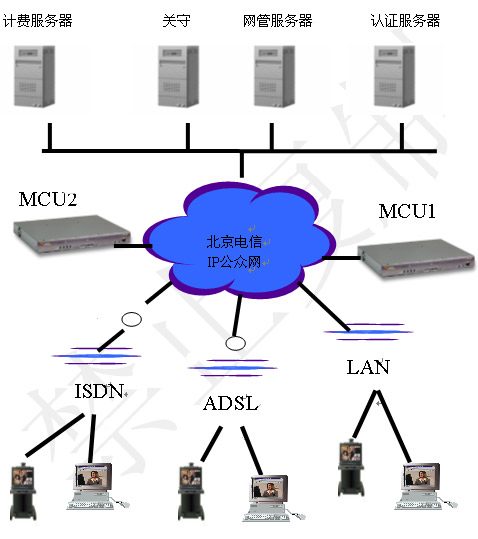 H.323協(xié)議的視訊平臺(tái)包括兩個(gè)層面:視訊交換網(wǎng)絡(luò)和運(yùn)營支撐網(wǎng)絡(luò)。視訊交換網(wǎng)絡(luò)包括MCU、Gatekeeper、Gateway、終端等。運(yùn)營支撐網(wǎng)絡(luò)包括網(wǎng)絡(luò)管理系統(tǒng)、認(rèn)證計(jì)費(fèi)系統(tǒng)、資源管理系統(tǒng)、會(huì)議控制系統(tǒng)、用戶管理系統(tǒng)、客戶服務(wù)系統(tǒng)等。