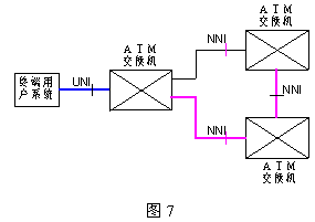 UNI和NNI ATM有兩種類(lèi)型的接口:一種是用戶(hù)-網(wǎng)絡(luò)接口(UNI:User-Network Interface),一種是網(wǎng)絡(luò)-網(wǎng)絡(luò)接口(NNI:Network-Network Interface)。如下圖7所示。