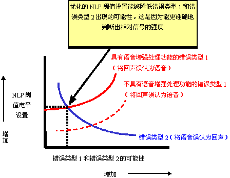 dB)能夠顯著降低將雙對(duì)話(huà)語(yǔ)音信號(hào)誤認(rèn)為聲學(xué)回聲信號(hào)的概率,從而防止了"錯(cuò)誤類(lèi)型2"?傊,在"錯(cuò)誤類(lèi)型1"(實(shí)線(xiàn)曲線(xiàn),具有語(yǔ)音增強(qiáng)特性)和"錯(cuò)誤類(lèi)型2"曲線(xiàn)的交叉點(diǎn)上,通過(guò)與之對(duì)應(yīng)的NLP設(shè)置,可以獲得最佳的性能(請(qǐng)參見(jiàn)圖10)。