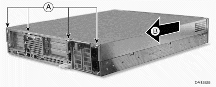 1. 卸下機箱后部用來固定PCI擋板支架的兩顆螺絲釘(參見圖5-6中A);
