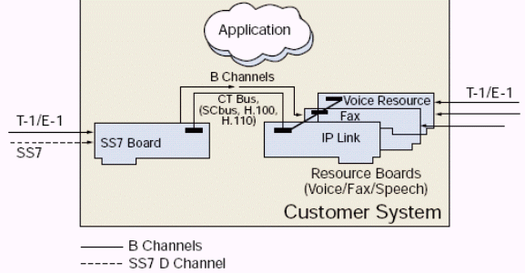 其它 T-1/E-1 通道被語音板卡管理,可通過CTbus路由到七號信令板卡