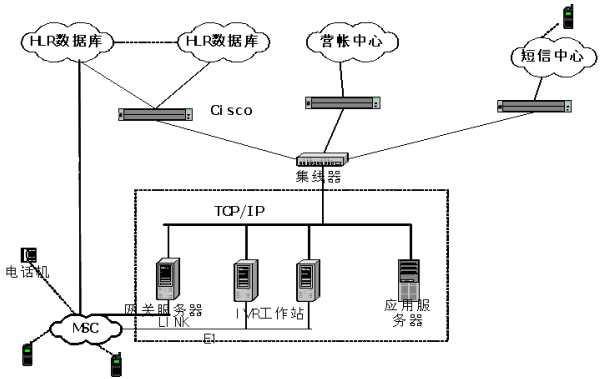。。如圖所示,Miscall平臺主要包括三個部分:信令網(wǎng)關服務器、IVR工作站及應用服務器。