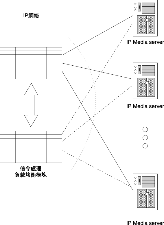 推薦使用信令與媒體流分離模式,前端服務(wù)器兩臺互為備份地配置,實(shí)現(xiàn)信令控制功能和負(fù)載均衡功能,后臺由一組媒體服務(wù)器池組成,實(shí)現(xiàn)媒體流的處理。這樣的架構(gòu)可以保證整體系統(tǒng)高可用性和可擴(kuò)展性